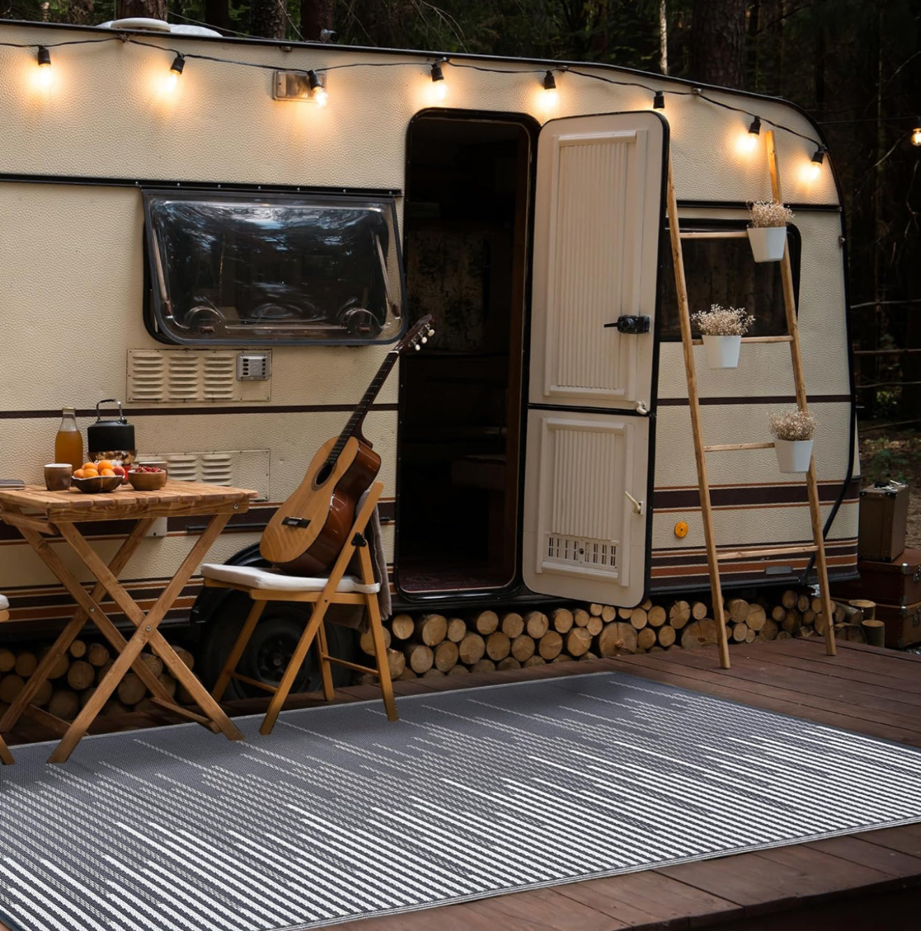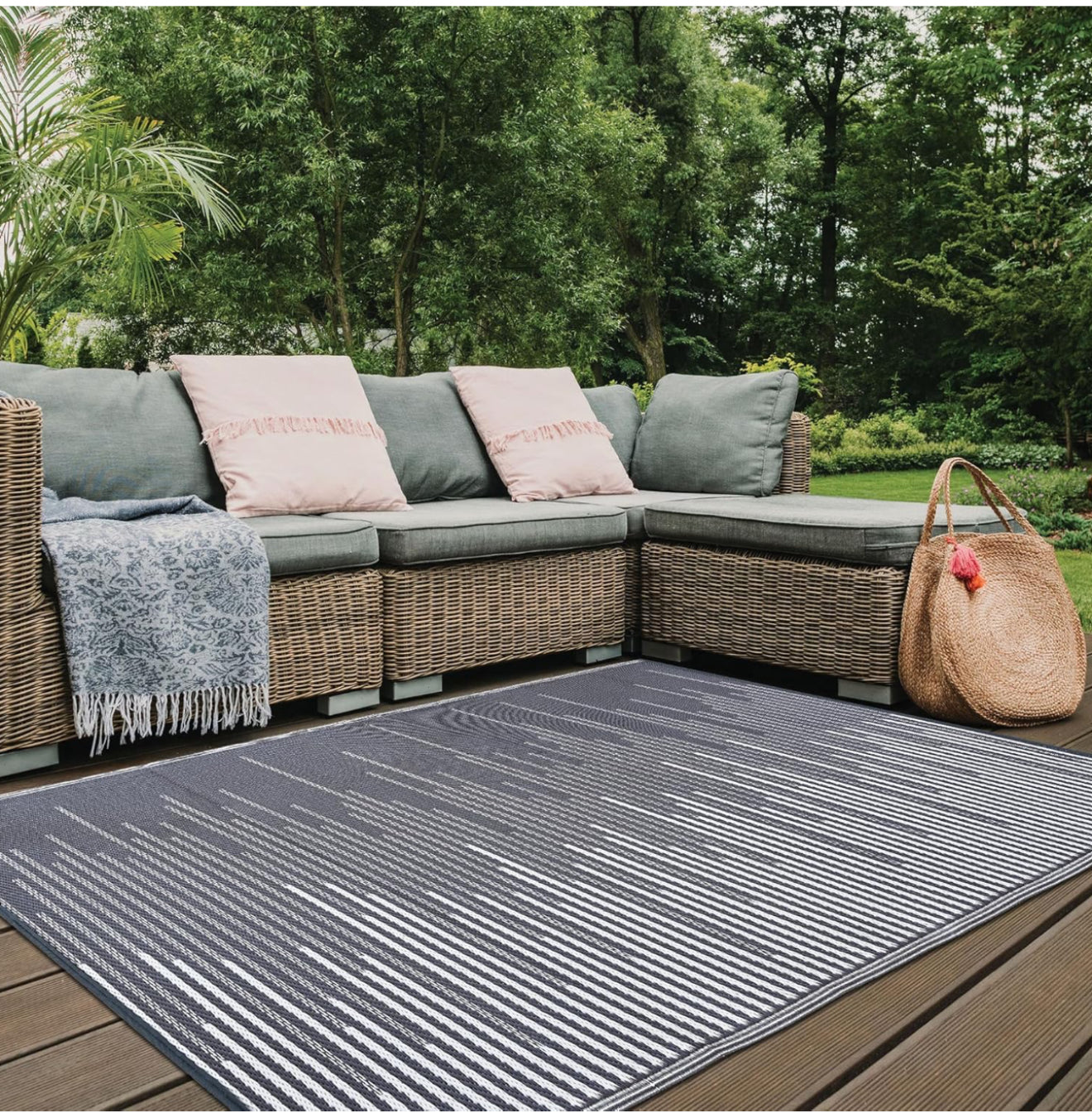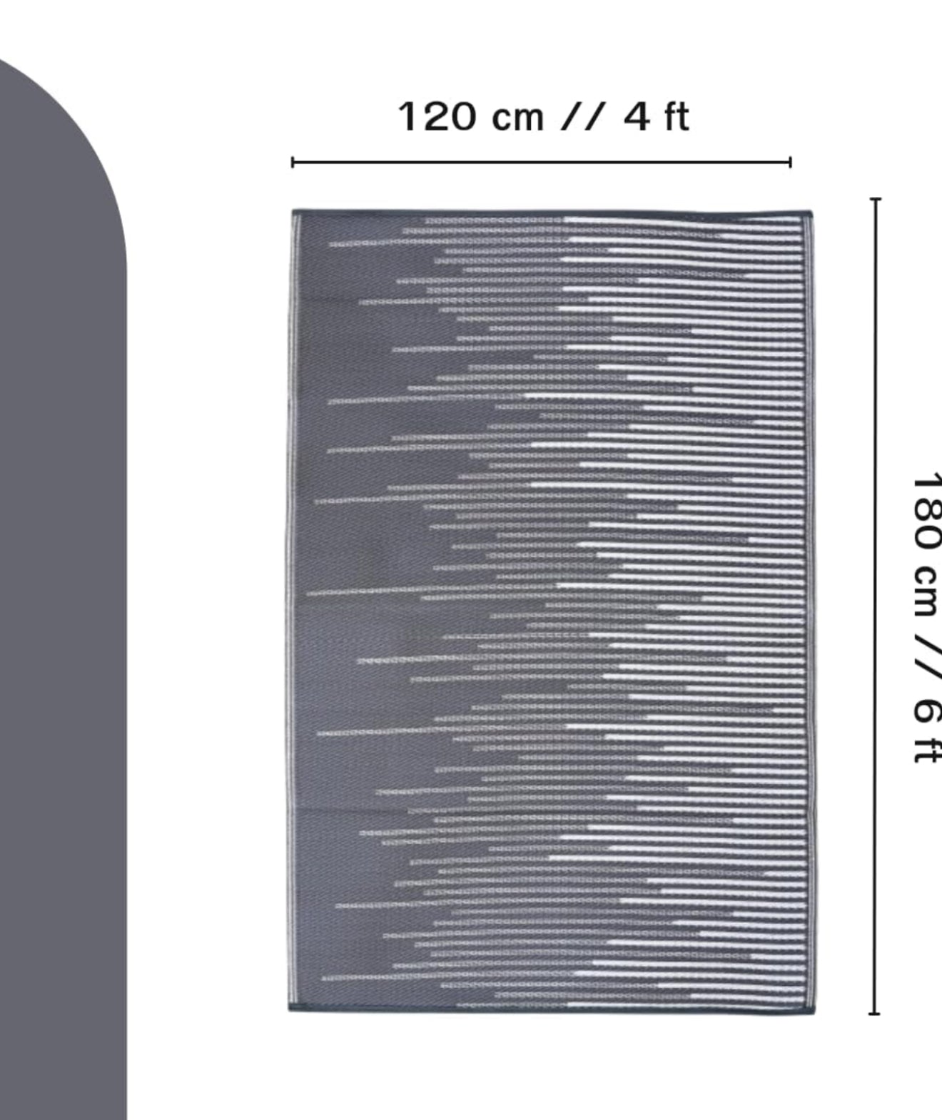 This Bohemian Patio Rug is a versatile and durable addition to any outdoor or indoor space. Made from recycled polypropylene, it is UV and fade resistant, making it perfect for patios, decks, offices, and living rooms. Its double-sided weaving adds to its multipurpose use, and its easy-to-clean and store design makes it a convenient choice. Simply roll it up and store it away when not in use.