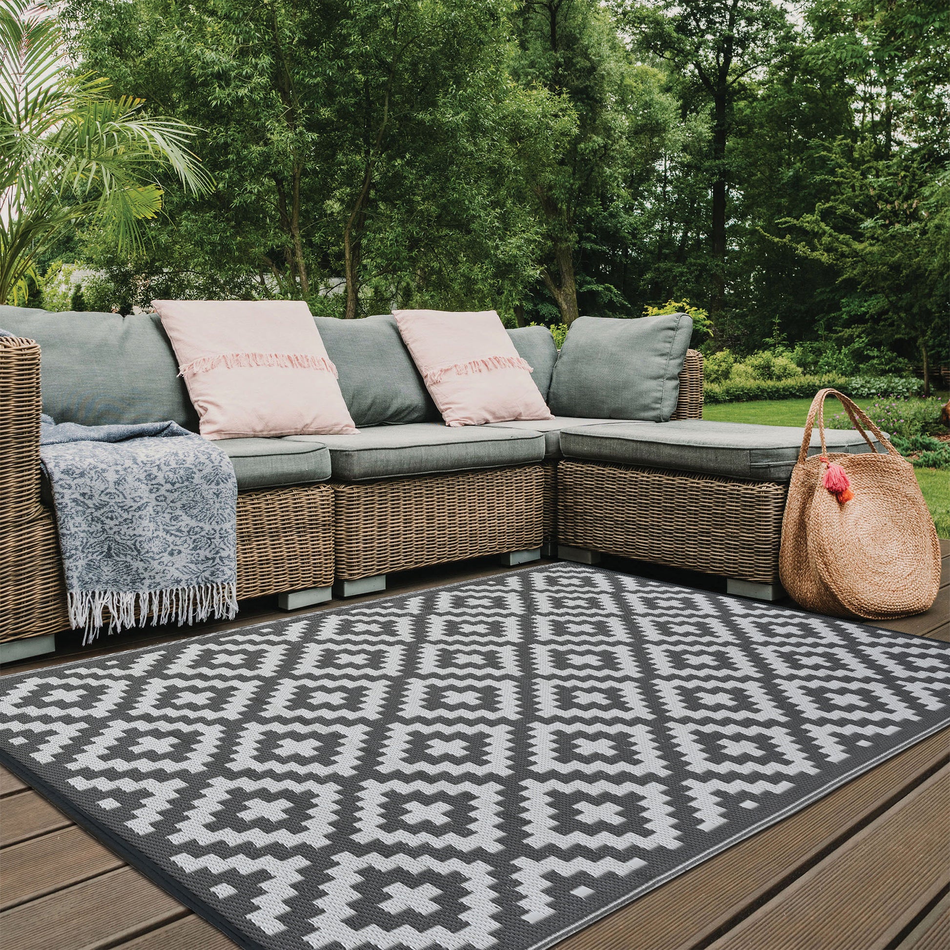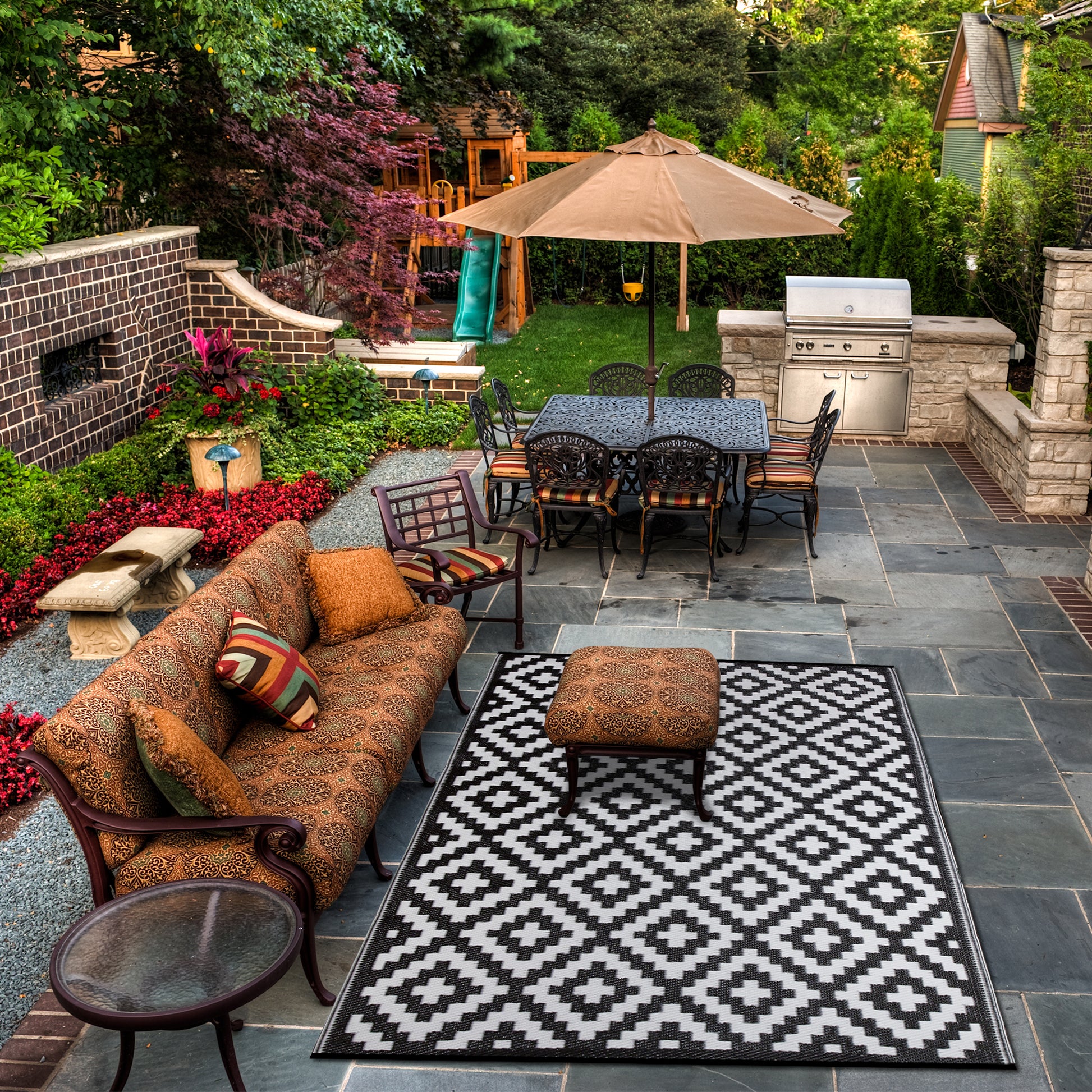 Outdoor Area Rug Mat Reversible and Waterproof Made with Recycled Plastic Straws for patios, Outdoors, Camping, Balcony, Deck, RV