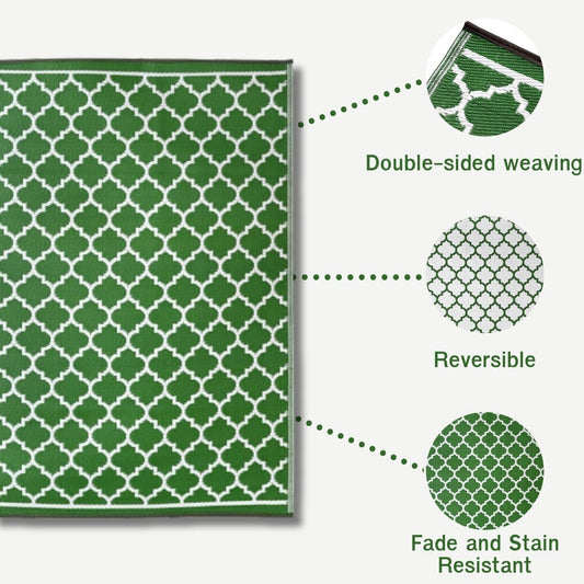 Outdoor Area Rug Mat Reversible and Waterproof Made with Recycled Plastic Straws for patios, Outdoors, Camping, Balcony, Deck, RV