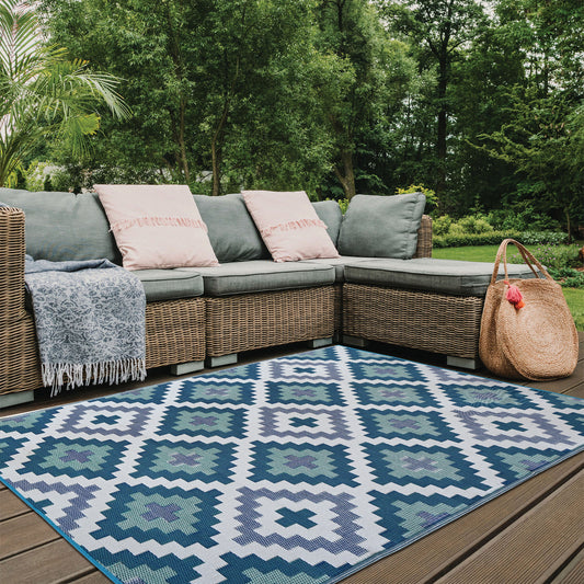 Geometric Indoor/Outdoor Patio Rug For Patio, Deck, Office, Living Room